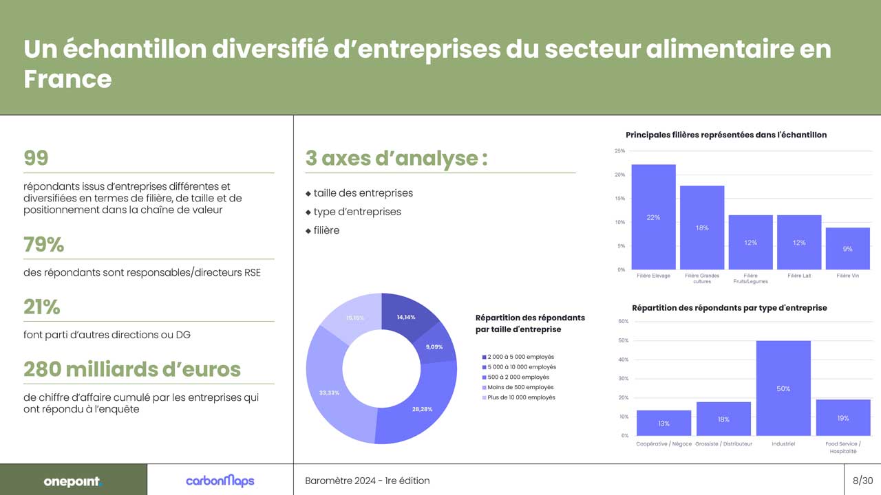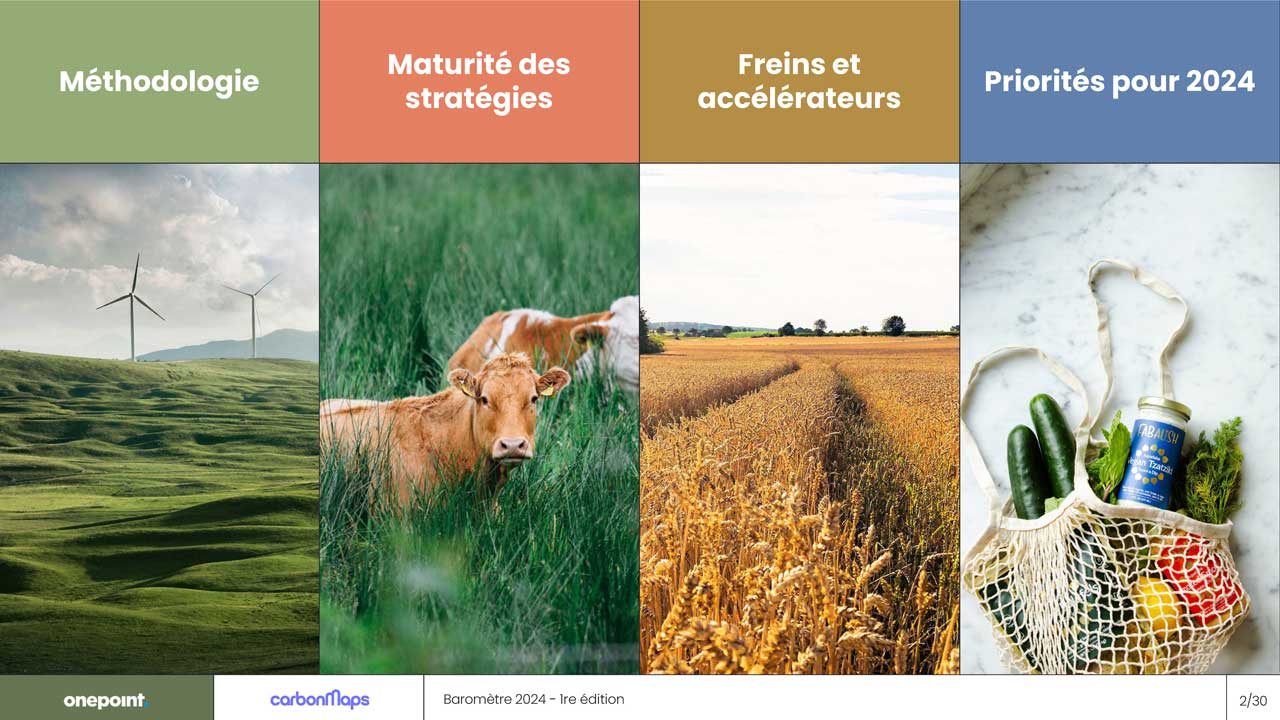 Carbon Maps a fait appel à moi pour donner vie aux résultats de leur enquête sur les stratégies climat dans l'agroalimentaire. L'objectif était de créer des supports visuels clairs, esthétiques et efficaces pour structurer et rendre attractifs les résultats de l'enquête, et ainsi faciliter la compréhension des données pour renforcer l'impact du message.