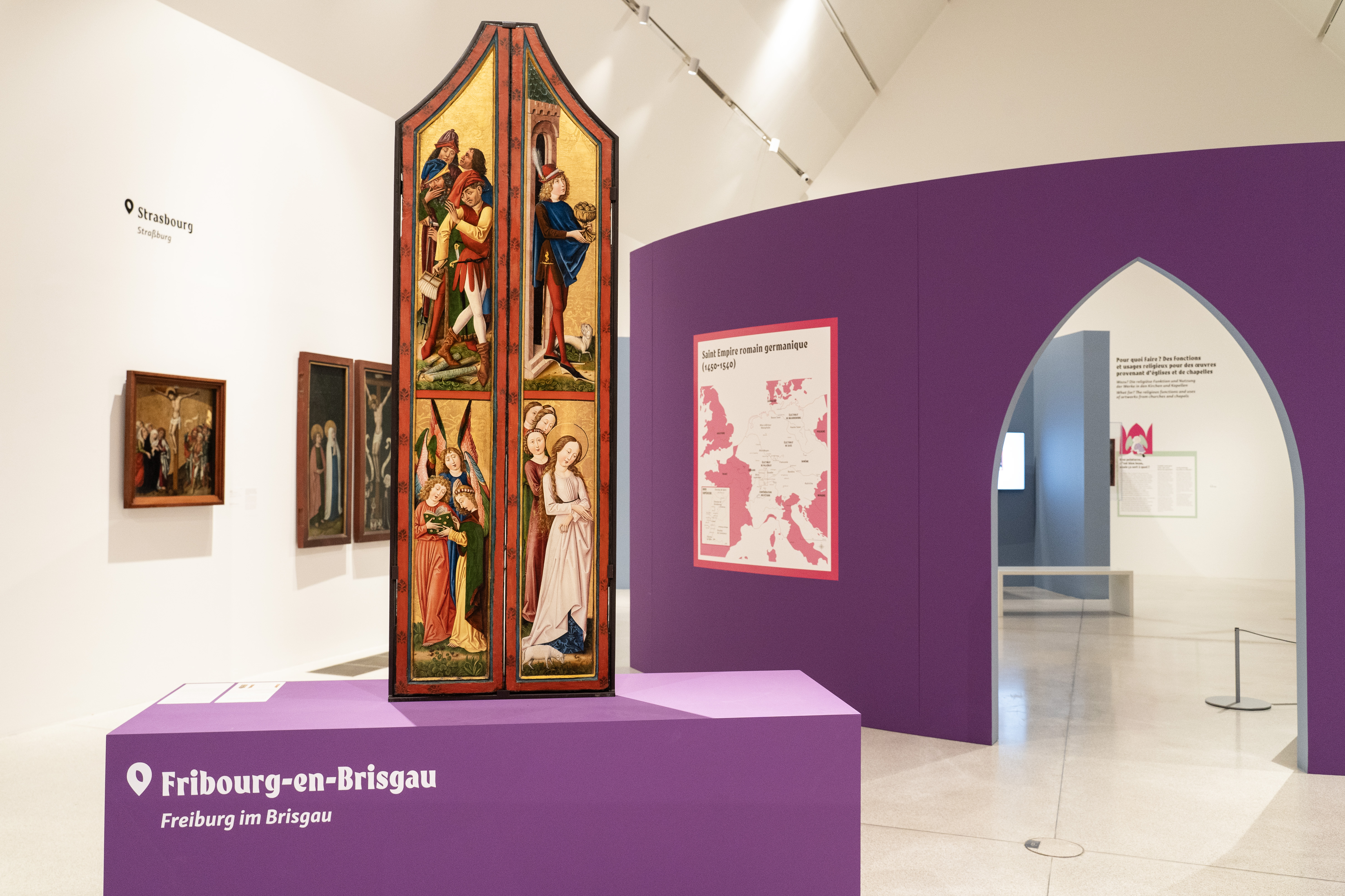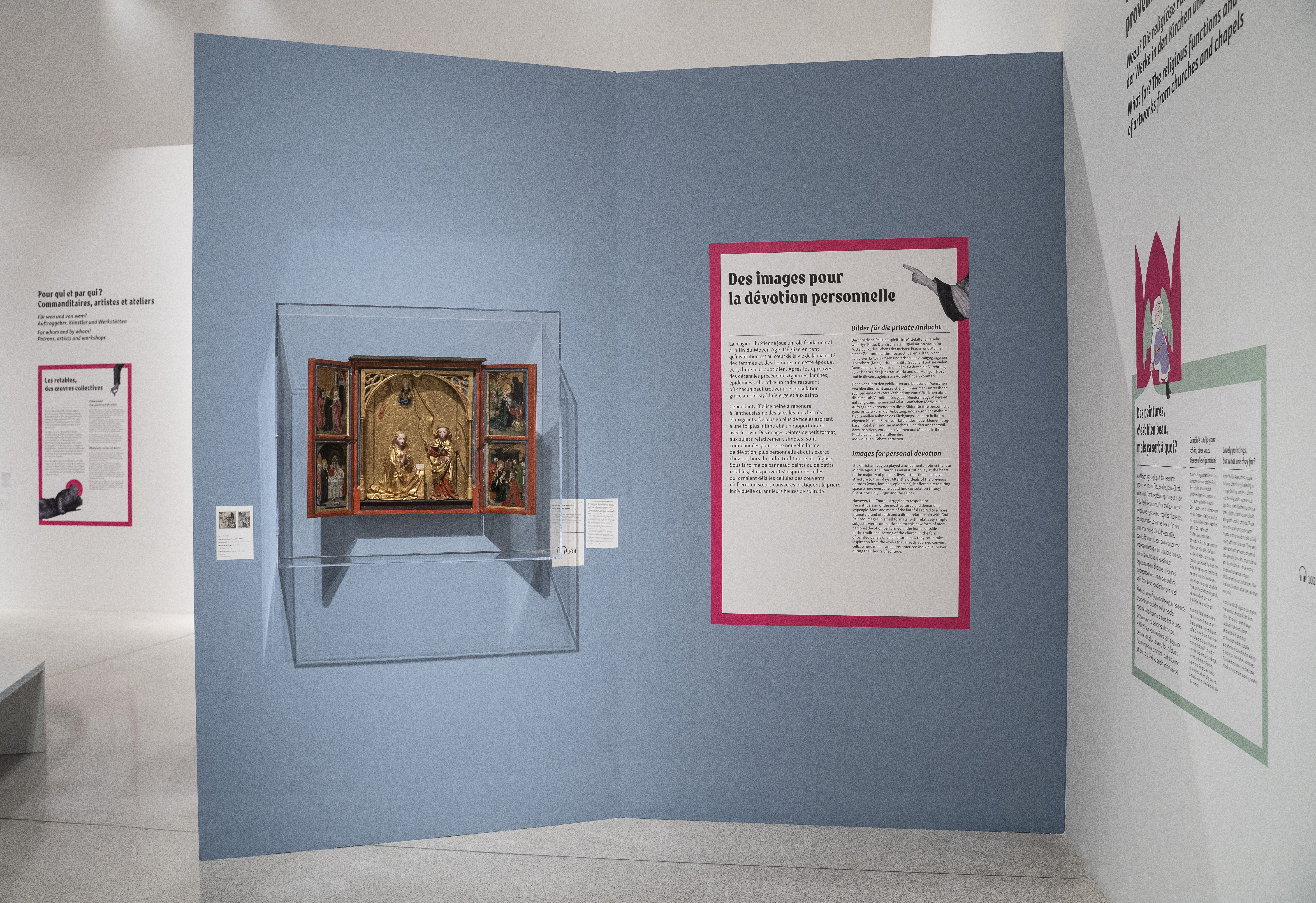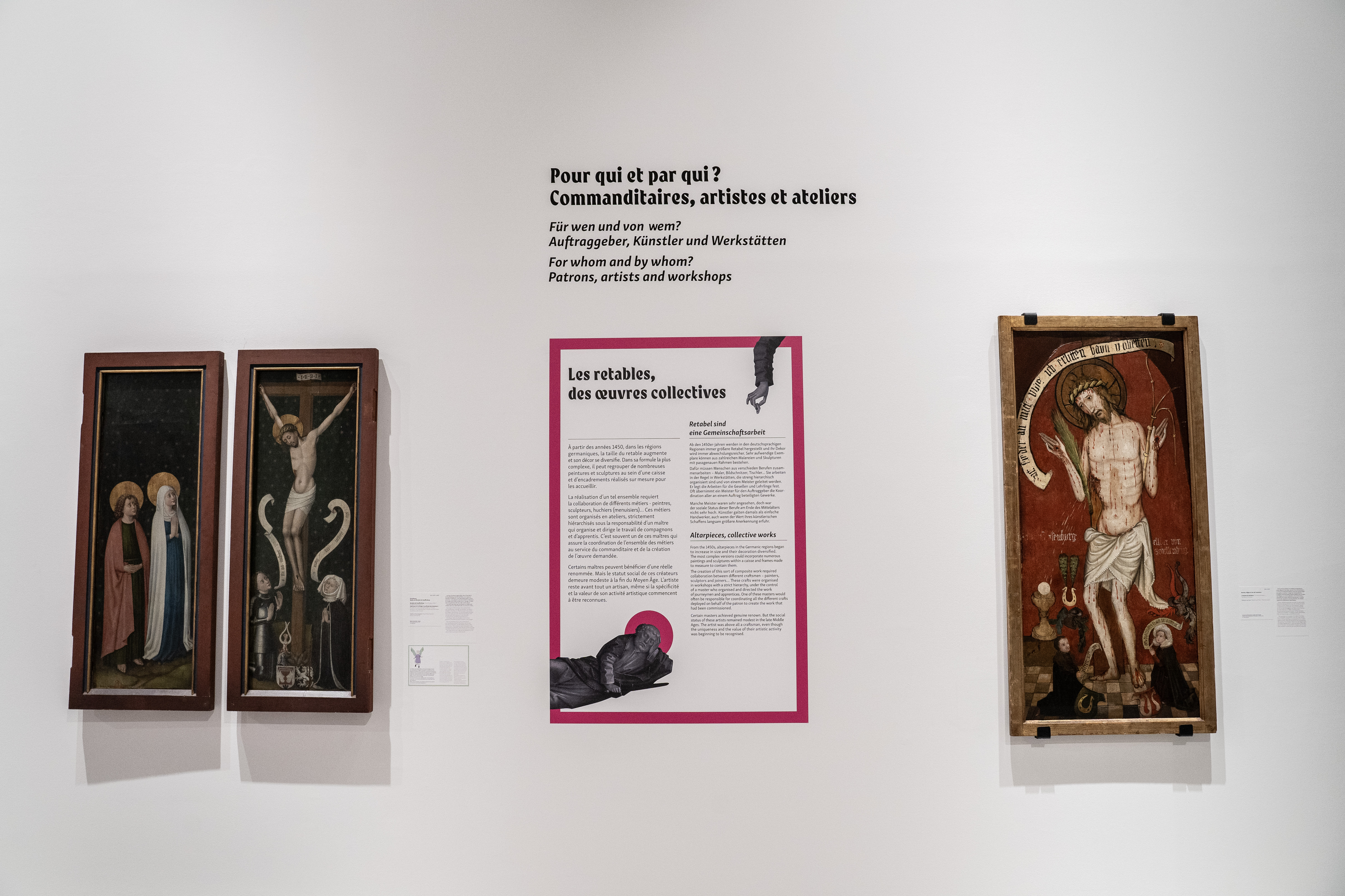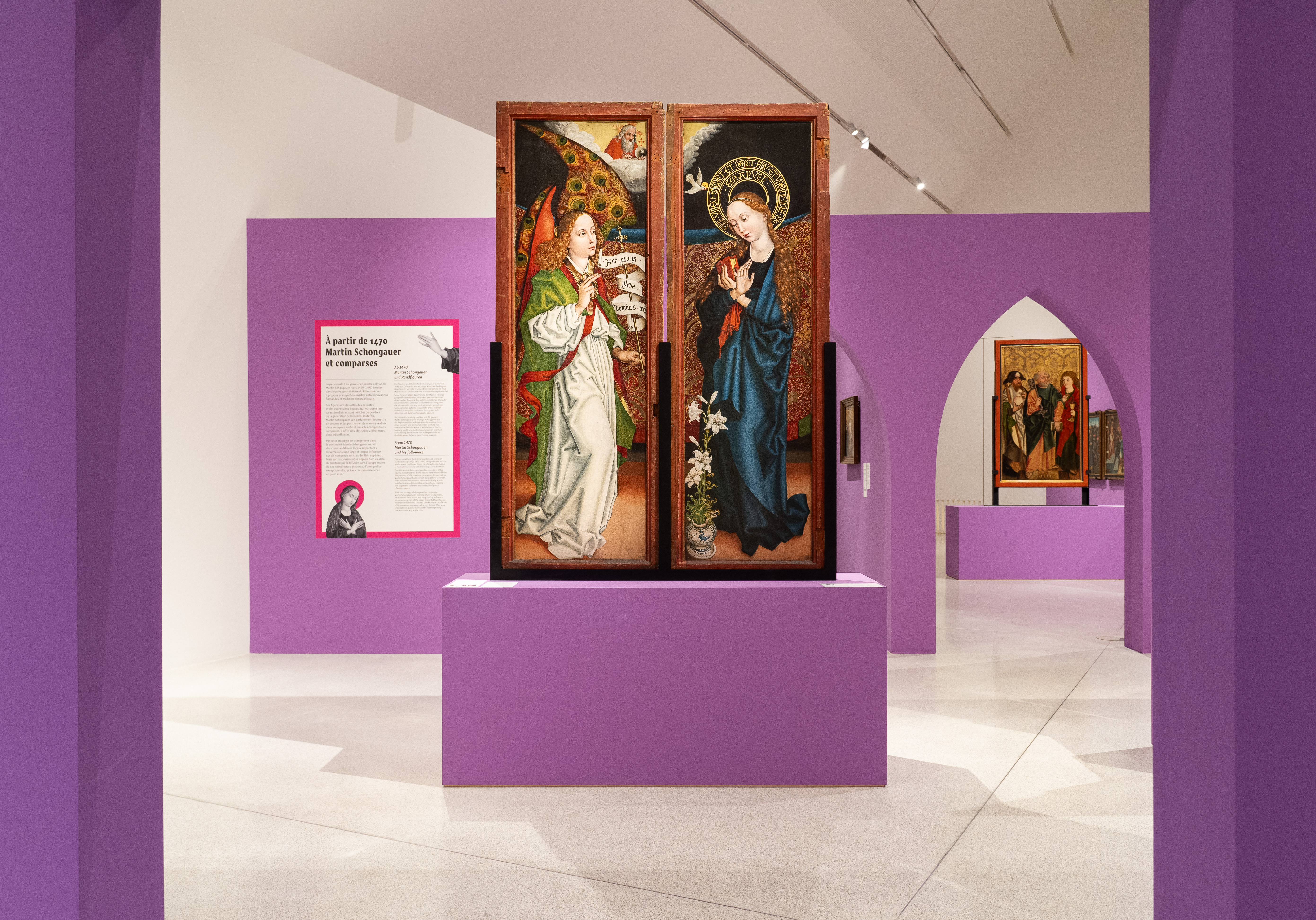Direction artistique et création de l'identité visuelle de l'exposition Couleur, Gloire et Beauté pour le Musée Unterlinden. Le but de cette exposition était de rendre le sujet accessible à tous à travers deux parcours didactiques parallèles, proposant deux niveaux de lecture tout en gardant une unité graphique.