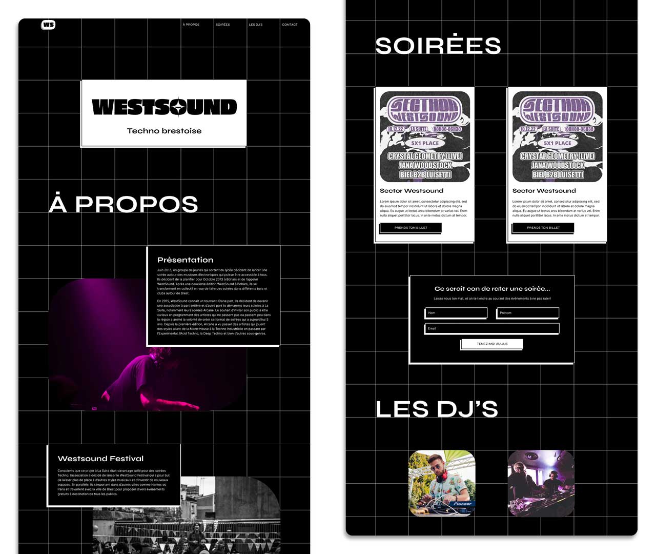 Après une décennie à animer la nuit brestoise, le collectif de musique électronique Westsound souhaitait donner un nouveau souffle à son identité visuelle. Nous avons conçu ensemble un univers graphique minimaliste et dynamique, inspiré par les reflets de la rade, pour accompagner le collectif dans ses prochaines aventures.